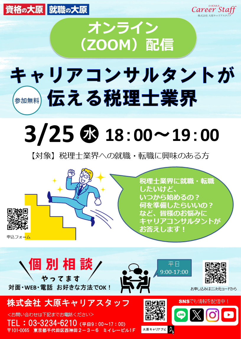 | 対象 | 税理士業界への就職・転職に興味のある方 |